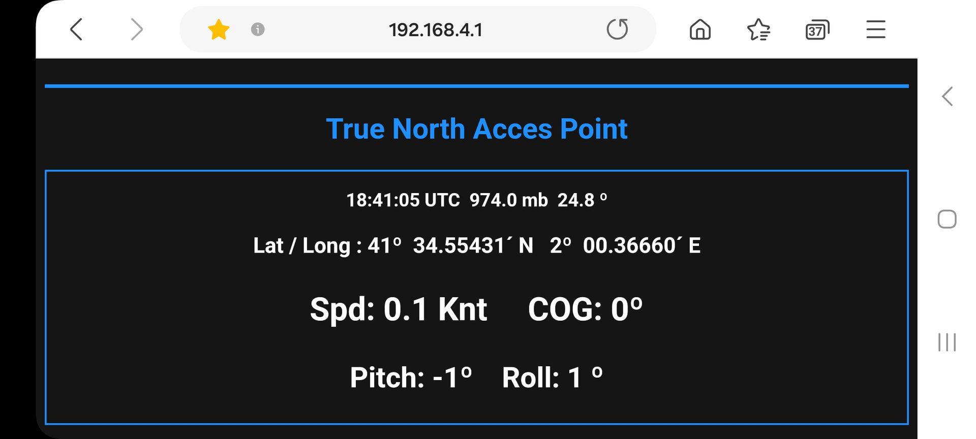 GPS time, lat/long coords., COG, speed, mag. bearing, pitch/roll values, speed graph, and the supported G-force or acceleration graph by the vessel in the axes Bow-Stern, Starboard-Port and Z (up/down).